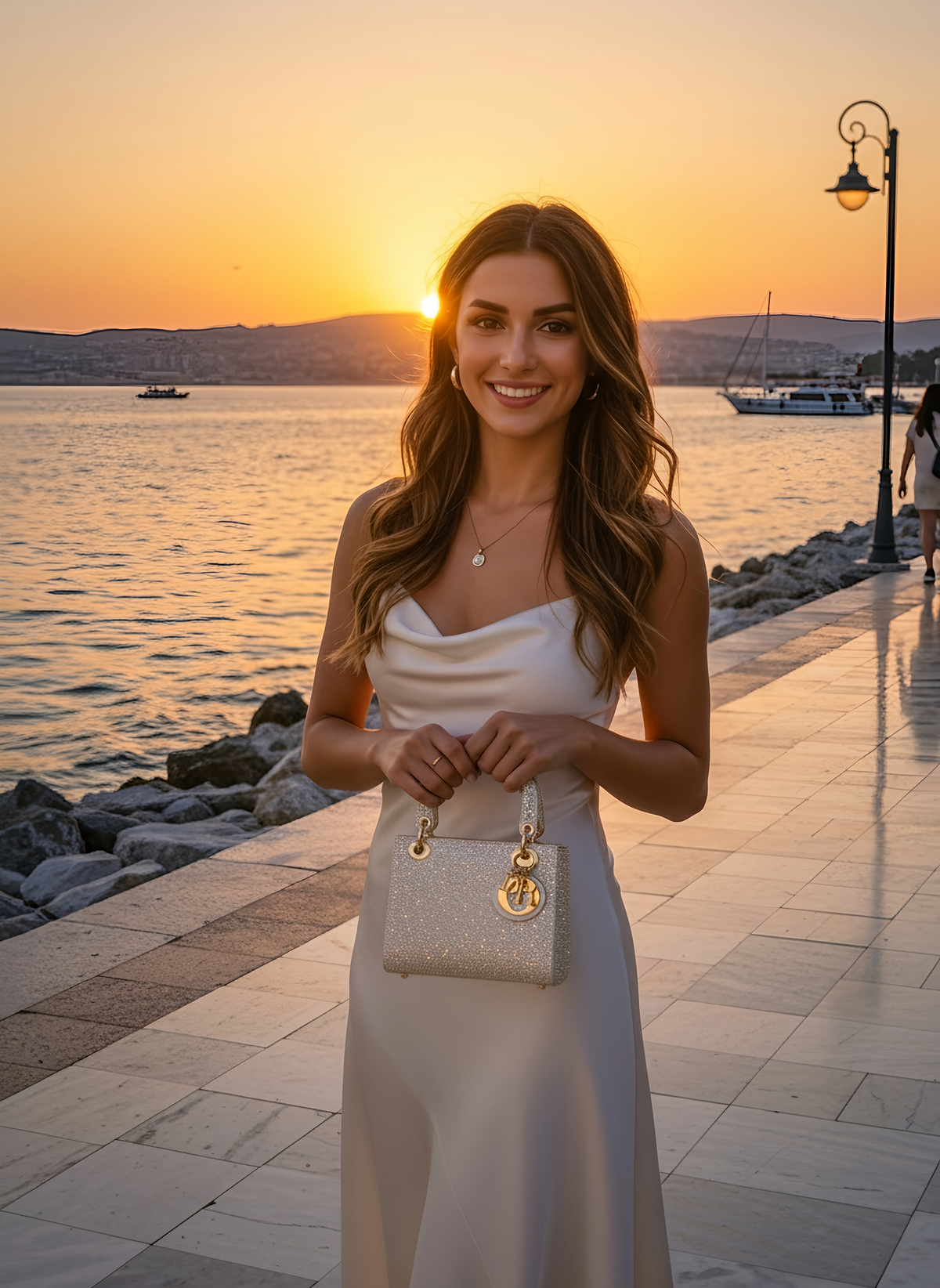 Zarafeti ve ışıltıyı bir arada sunan bu özel mini çanta, kadın şıklığının en sade ama en güçlü hâlini temsil eder. Her detayında el işçiliğinin izini taşır, modern tasarımıyla her ortama kusursuzca uyum sağlar. Günlük kombinlerden özel davetlere kadar her stile zarafet katar.
